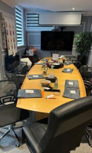 Book our meeting room for your board meetings. We have audio/visual equipment available including a projector, screen, white board, dry erase markers, laser pointer, 75 inch TV with USB extension and a small kitchen for serving your guests.